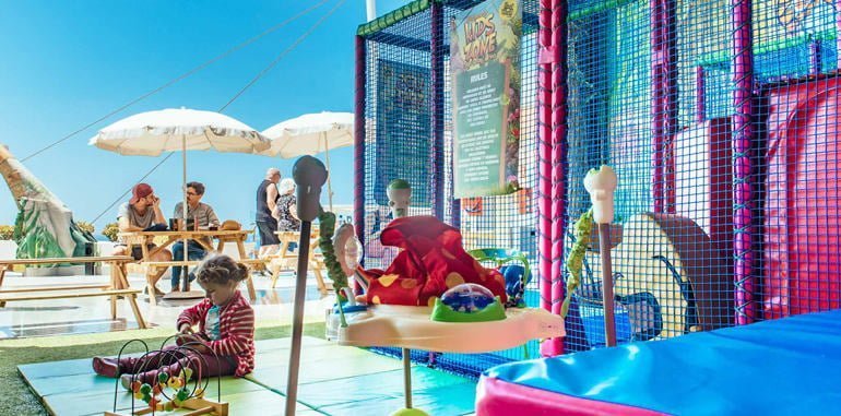 A soft play area located at the Lost World Cafe with a mini-slide and assortment of dinosaur related toys for small children to enjoy. Parents can easily track and watch from the open-air picnic tables with sun umbrellas.